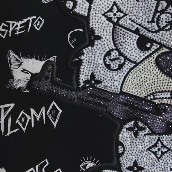 Camiseta Slim Fit Pirate Gang París Negra Pedrería Brillante El Patrón