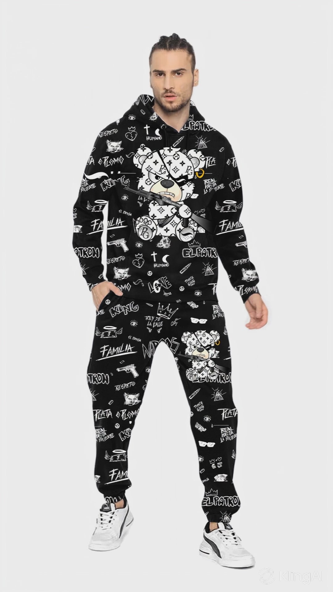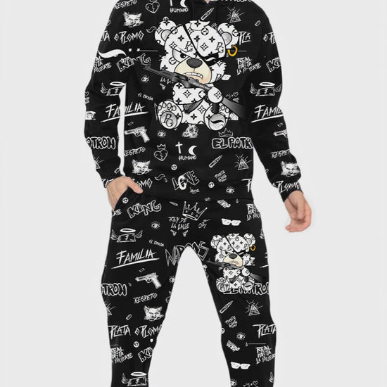 El poder está en los detalles. El Conjunto Pirate Gang Paris con osito y bandana negra redefine el concepto de elegancia callejera: sobrio, potente y con carácter. Una pieza para quienes prefieren destacar sin hacer ruido, con un estilo limpio, pero cargado de actitud.